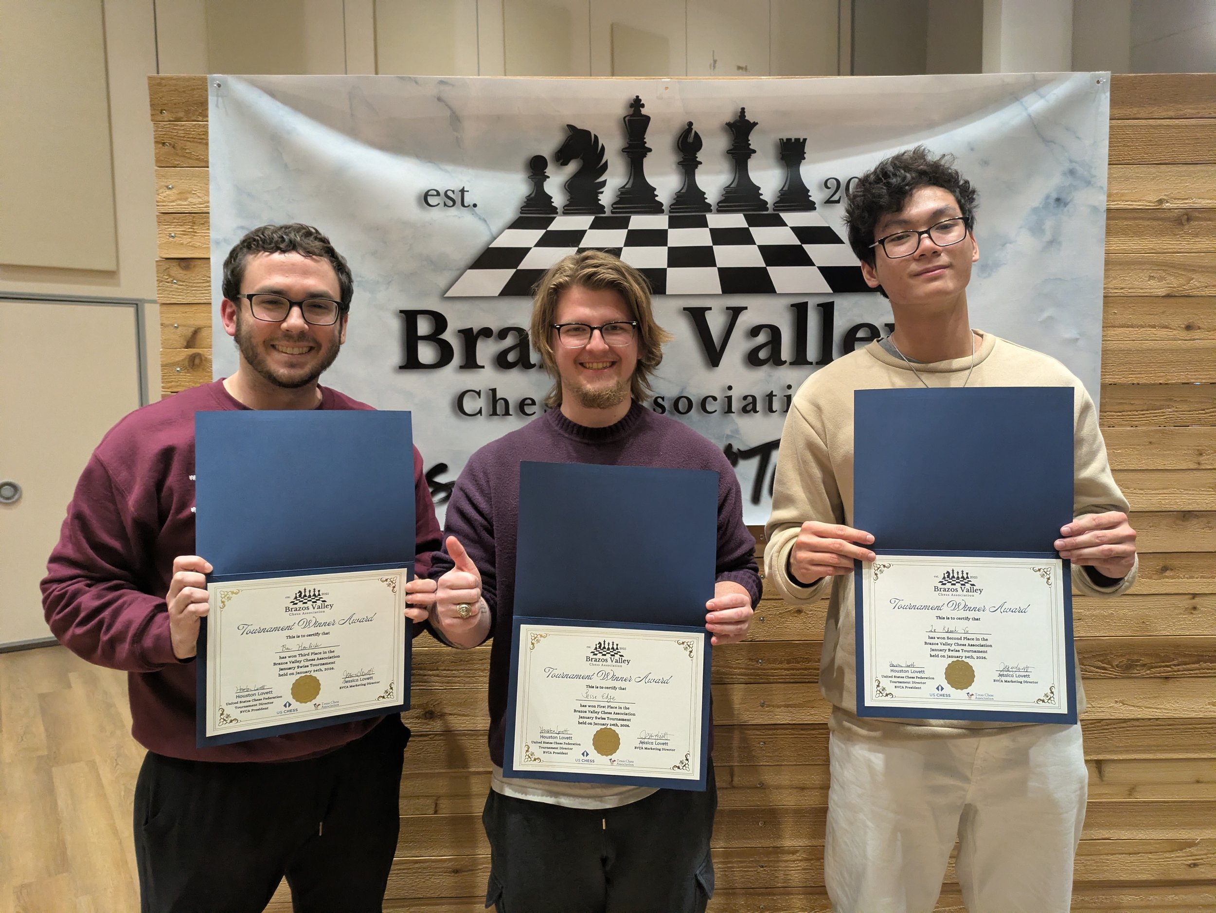 Jesse Edge scored 3.5/4.0 points to clinch clear 1st place in the Open section, while Le Khanh Vu won 2nd place with 3.0/4.0. Ben Horlick won 3rd place and with 3.0/4.0 points. Each player also won a substantial cash prize!